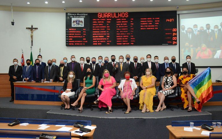 Os 34 vereadores eleitos, o prefeito e o vice-prefeito tomaram posse de seus cargos para…